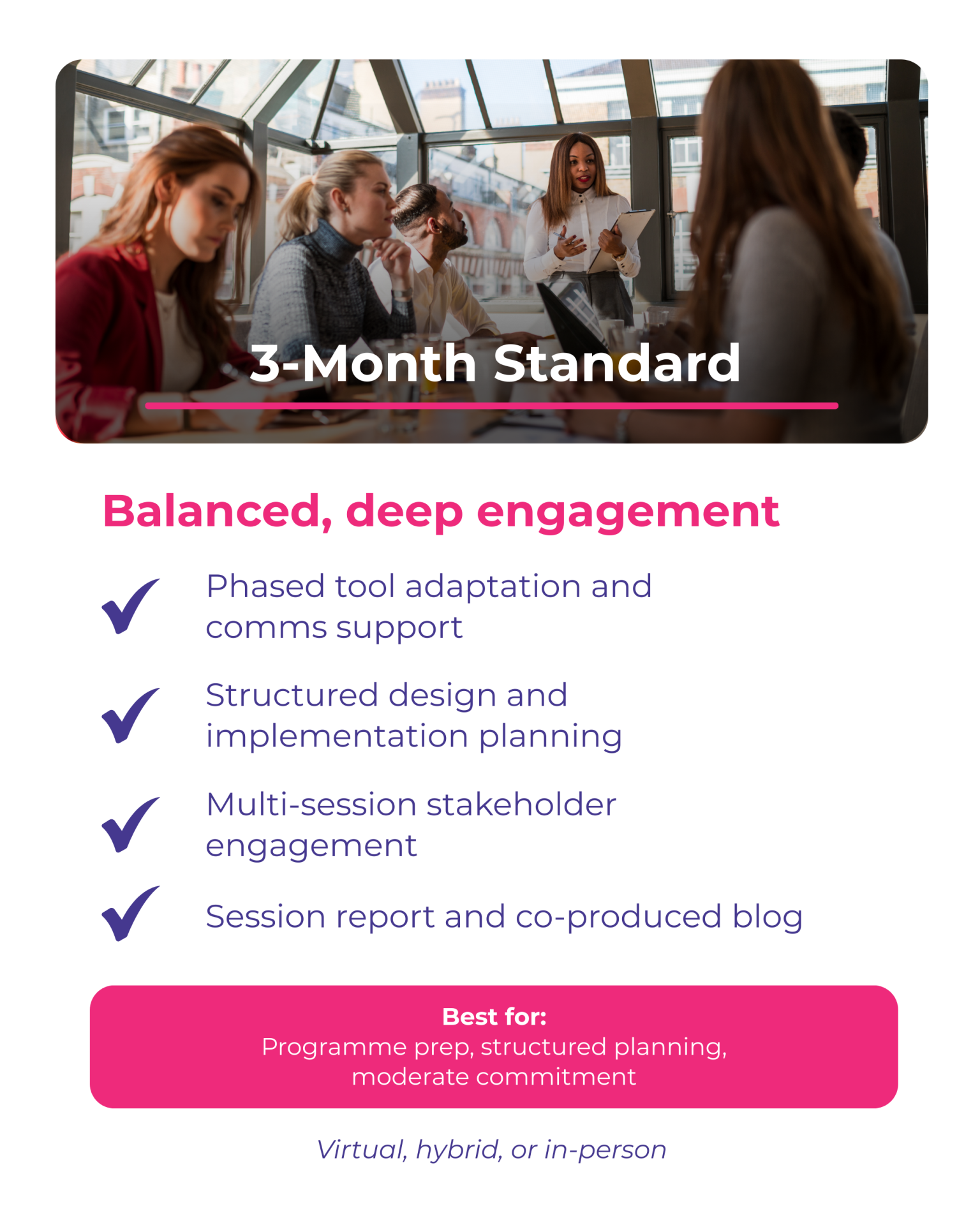 Our service offers a structured yet adaptable approach built around three pillars: